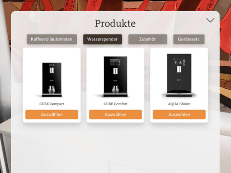Hinweis: Ebenso können auch mehrere unterschiedliche Kaffeegeräte oder auch mehrere unterschiedliche Wassergeräte nebeneinander aufgestellt werden. Somit können Sie dem Kunden die unterschiedlichen Modelle direkt nebeneinander präsentieren.